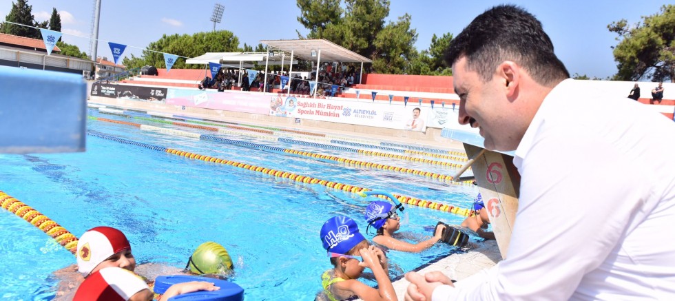 Altıeylül Belediyesi, Gençlik ve Spor Hizmetleri Müdürlüğü bünyesinde organize ettiği yüzme kursları ile Atatürk Açık Yüzme Havuzu’nda 6-14 yaş arası çocuklar ile bir araya geliyor.