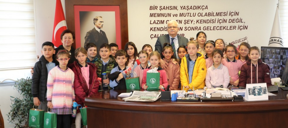 Şehit Yılmaz Kobak İlkokulu 3. Sınıf öğrencileri ve öğretmenleri Burhaniye Belediye Başkanı Ali Kemal