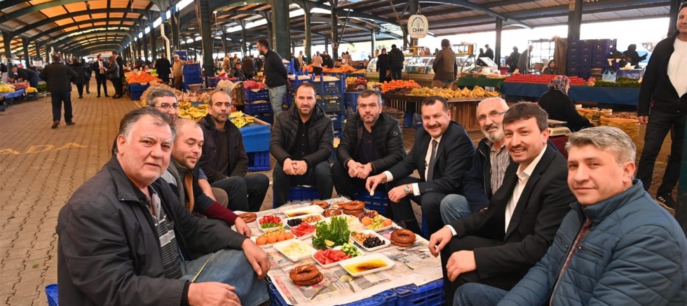 Balıkesir Büyükşehir Belediye Başkanı Yücel Yılmaz, Balıkesir Çerçi Manifaturacı ve Tuhafiyeciler Esnaf Odası Fatih Çakır ve Balıkesir Sebzeciler ve Meyveciler Odası Başkanı Nurullah Bozkır ile birlikte Altıeylül İlçesi Gümüşçeşme Mahallesi’nde kurulan Salı Pazarı’nda pazarcı esnafını ziyaret etti. Pazarda tek tek tüm tezgahları gezen Başkan Yılmaz’ı esnaf güler yüzle karşıladı. Gelen talepleri tek tek kendisi not alan Başkan Yılmaz, esnaf ile birlikte kahvaltıya oturdu.