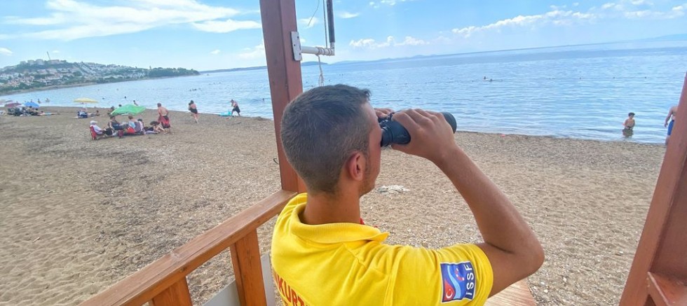 Belediye tarafından yapılan cankurtaran kulelerinde boğulma vakalarına karşı görevlerini yapıyor.