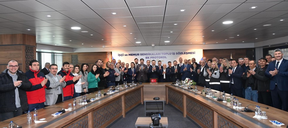 Balıkesir Büyükşehir Belediyesi; HAK-İŞ Sendikası, YERELSEN, Memur-Sen, Hizmet-İş Sendikası, Özel Güvenlik ve Koruma İşçileri Sendikası, Öz Taşıma İş Sendikası ile Bem-Bir-Sen sendikalarıyla “İşçi ve Memur Sendikaları Toplu İş Sözleşmesi Ek Protokolü İmza Töreni” için masaya oturdu. Balıkesir Büyükşehir Belediye Başkanı Yücel Yılmaz, HAK-İŞ Sendikası Genel Başkanı Mahmut Arslan, Belediye ve Özel İdare Çalışanları Birliği Sendikası (Bem-Bir-Sen) Başkanı Levent Uslu işçileri mutlu eden yüzde 75’lik zammı içeren protokolü imzaladı. Toplu iş sözleşmesine; AK Parti İl Başkanı Mehmet Aydemir, sendika temsilcileri ve belediye çalışanları katıldı.