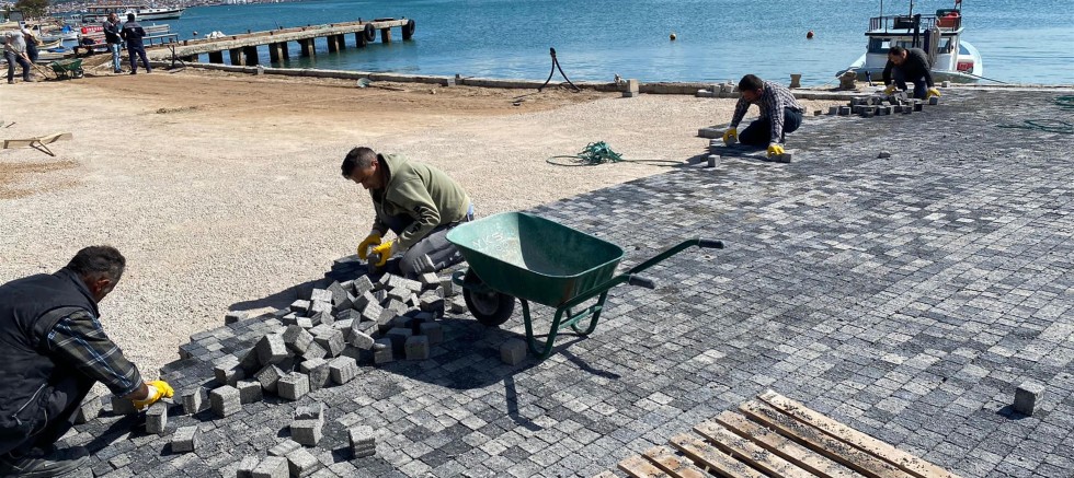 Uzun yıllardır kullanımda olduğu için tahrip olan ve kullanım ömrünü tamamlayan kilit parke taşlarının kaldırılarak Cunda’nın tarihi ve kültürel kimliğine uygun, tarihi yapıların görkemini gölgede bırakmayacak, sade bir tasarıma sahip antrasit renk küp taş döşemesi yapılıyor.