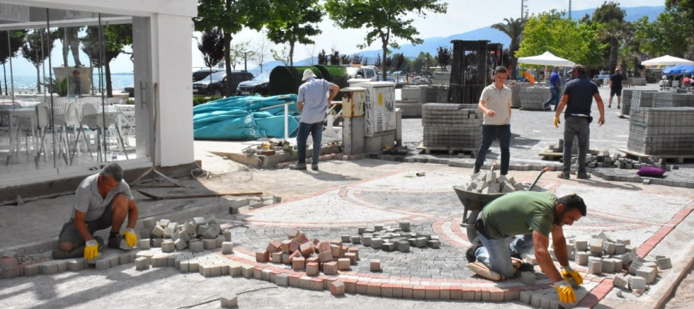 Akçay Mahallesi’nde de kordonu ve meydanı yaz sezonuna hazırlayan Fen İşleri Müdürlüğü ekipleri kordonu kozak taşı işe kaplıyor. Renkli taşlarla kordon düzenleme çalışmalarını sürdüren ekipler etap etap devam ederek Akçay’ı nostaljik görünümü modern yapısıyla, plajı ve yeni kent meydanıyla halkın kullanımına hazırlıyor.