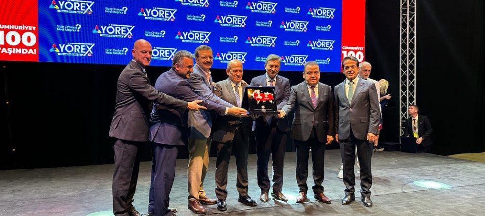 Fuarda, Edremit’in coğrafi işaretli yeşil çizik zeytini ve zeytinyağının aldığı “Avrupa Birliği Onay Şilti” ödülü Edremit Ticaret Odası Başkanı Ahmet Çetin’e Antalya Valisi Hulusi Şahin ve Antalya Büyükşehir Belediye Başkanı Muhittin Böcek tarafından verildi.
